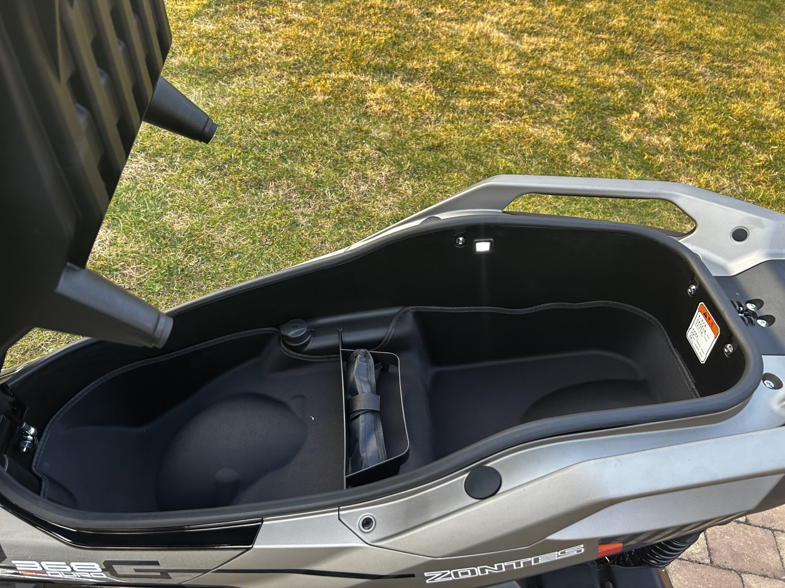 Úložný prostor pod sedlem pohodlně zajistí skladování dvou přileb, nebo jezdeckého vybavení či menších předmětů.